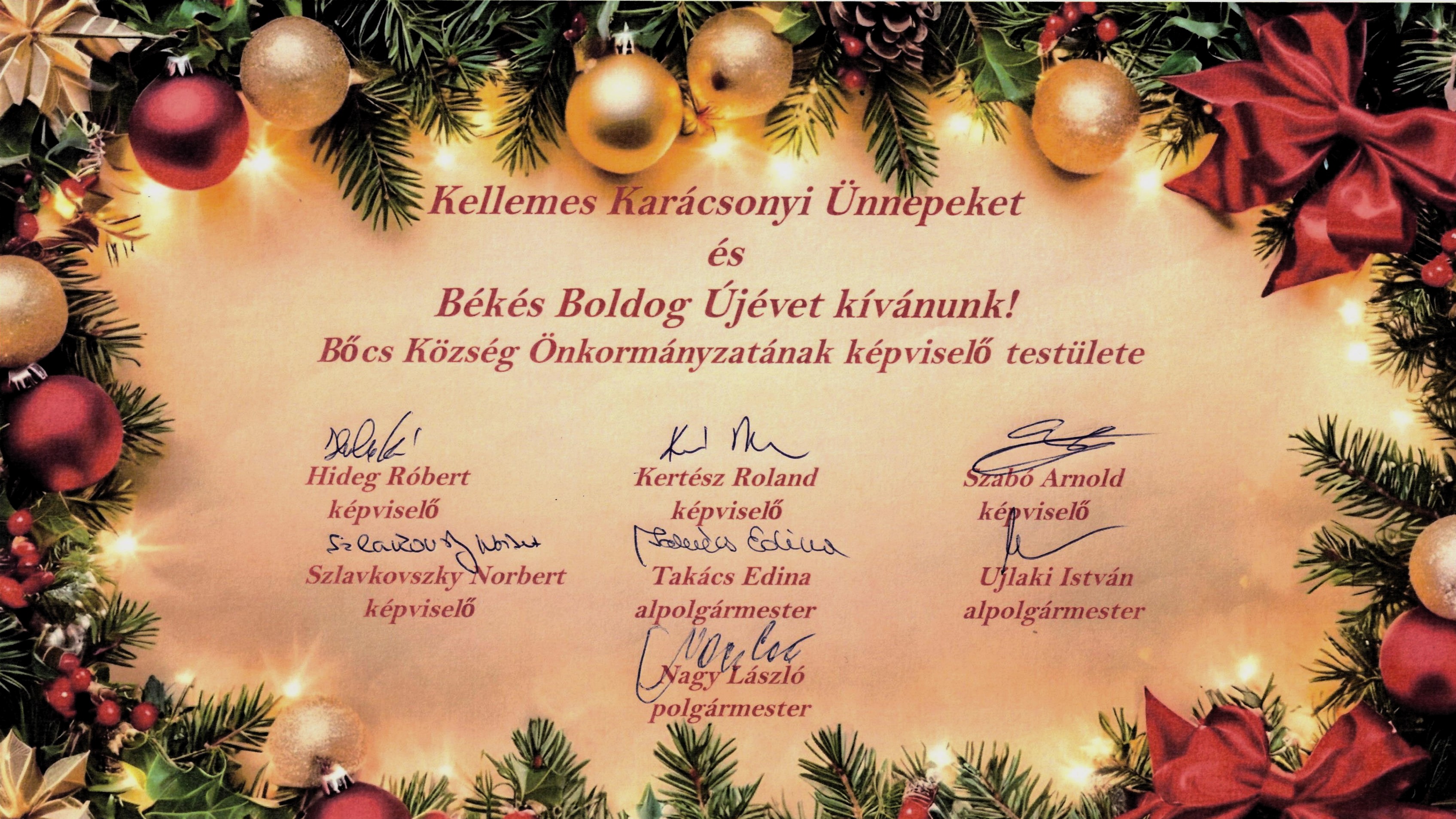 Bőcs Község Önkormányzat Képviselő-testülete nevében Békés Karácsonyi Ünnepeket és Boldog Új Évet kíván: Nagy László polgármester